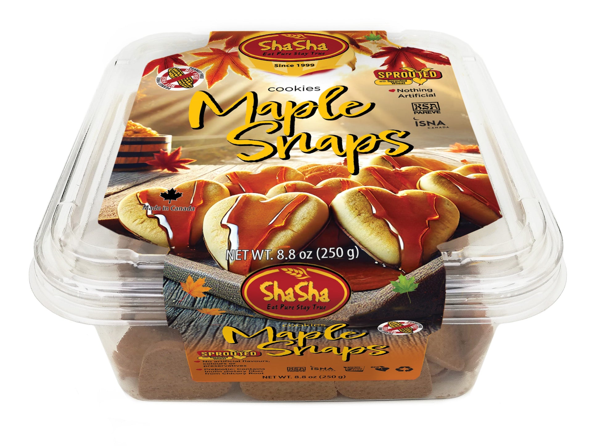 Our Maple Snaps are Clean Label with no artificial flavours, colours or preservatives. Manufactured in a peanut-free and dairy-free facility.