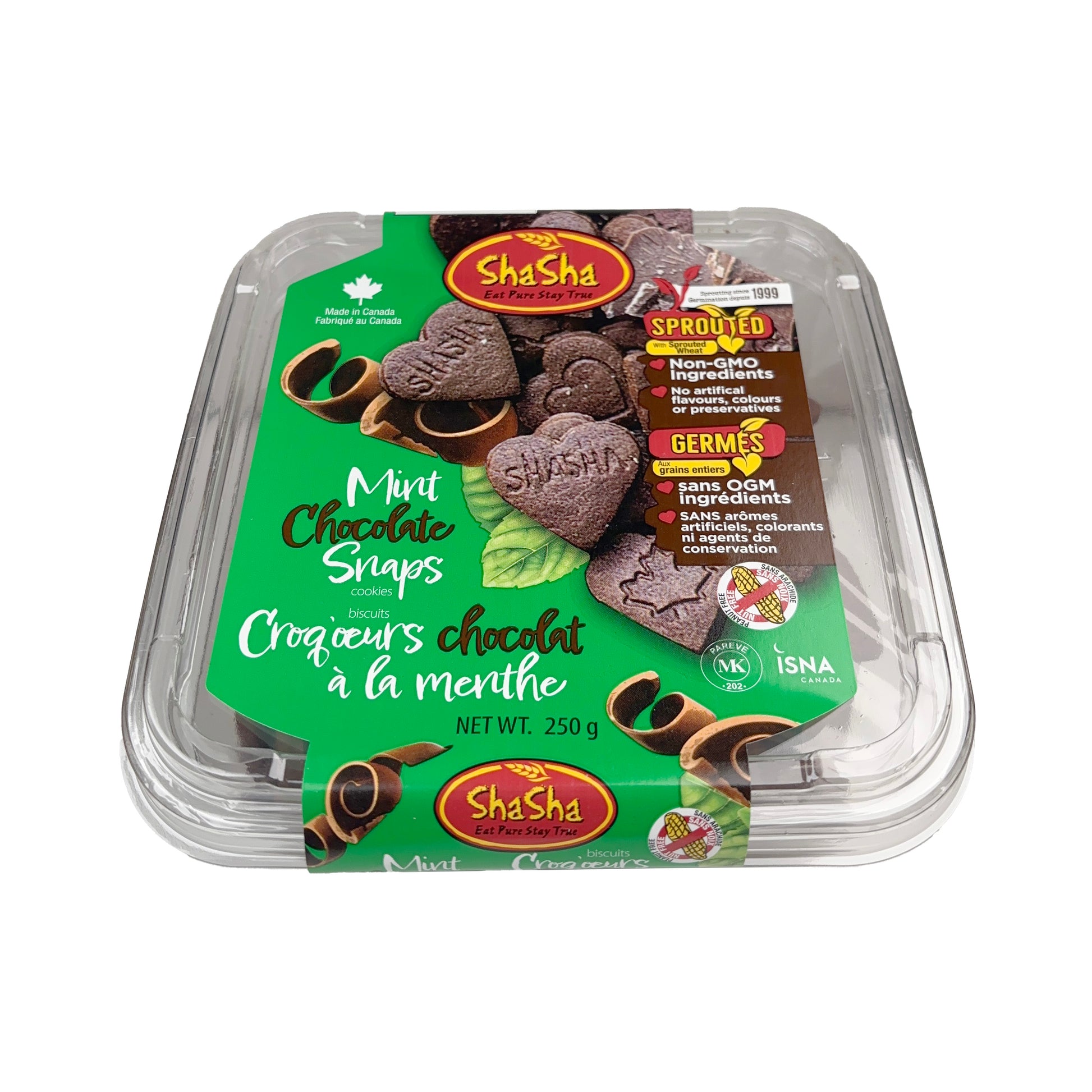Based in our traditional ever-popular Cocoa Snaps recipe, we added a little twist to come up with our latest Mint Chocolate Snaps! Indulge in fresh bursts of minty flavour with every bite of these chocolate treats. Made with non-GMO ingredients, and with no artifical colours, flavours or preservatives, you can satisfy that holiday sweet tooth with a guilt-free healthy alternative!